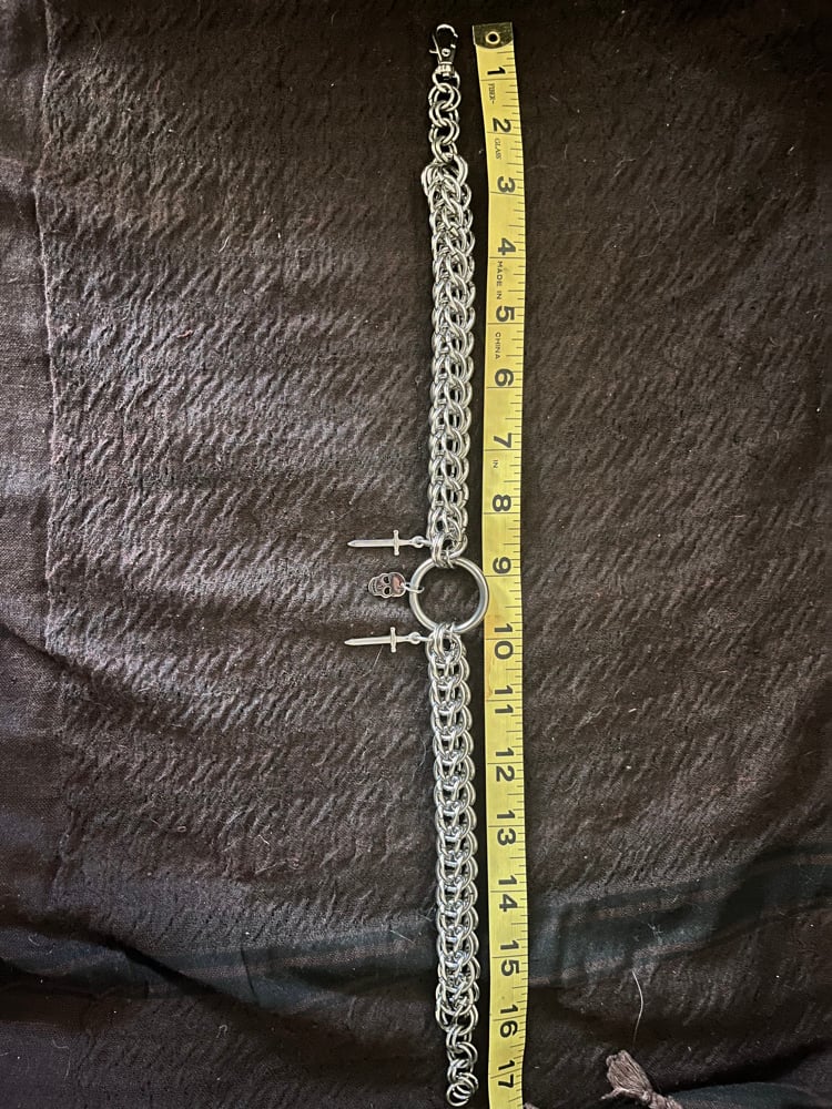 Stainless steel full Persian 6-in-1, steel swords and skull charm.