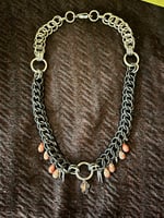 Blackened steel and stainless steel half Persian 3-in-1, Czech glass beads, steel spider charm. If I ever express a wish to work with materials this small again, just break my fingers with a hammer.